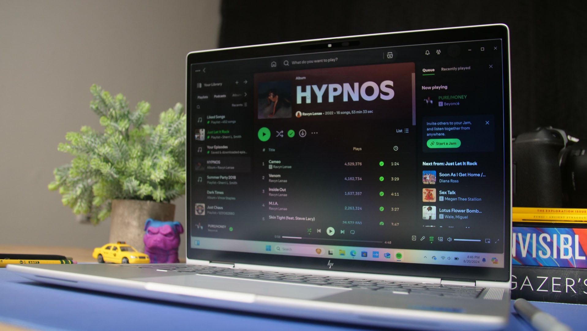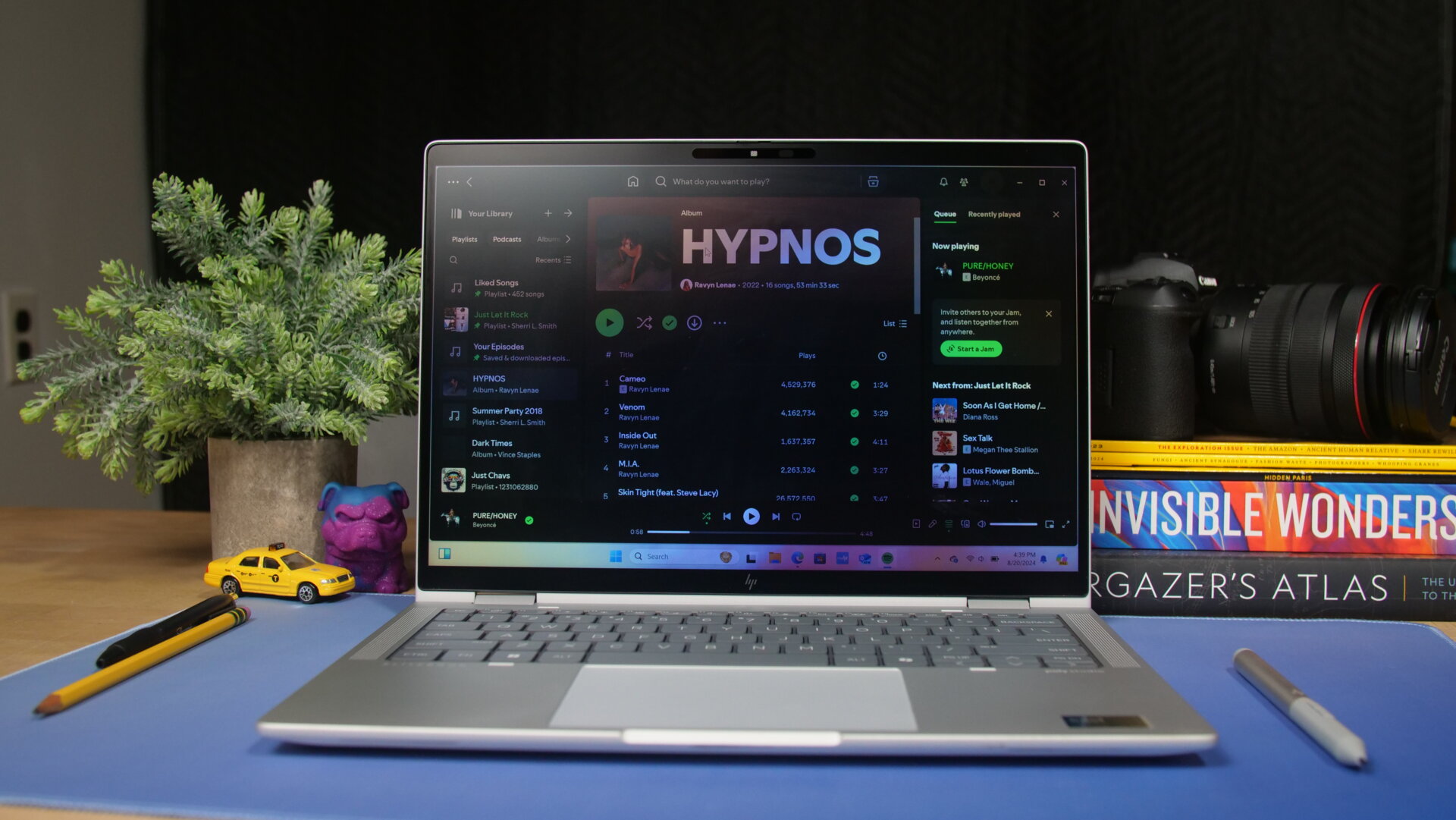 Laptop speakers are generally a hit or miss. In the case of the x360’s quad-speaker setup with its various amplifiers and Poly Studio software, it’s a hit. At max volume, the speakers filled my medium-sized living room. The soundstage was surprisingly spacious, making it easy to pinpoint every instrument, especially the horns in Maxwell’s “Bad Habits (uncut),” which were my favorite part of the song after the singer’s sultry tenor.