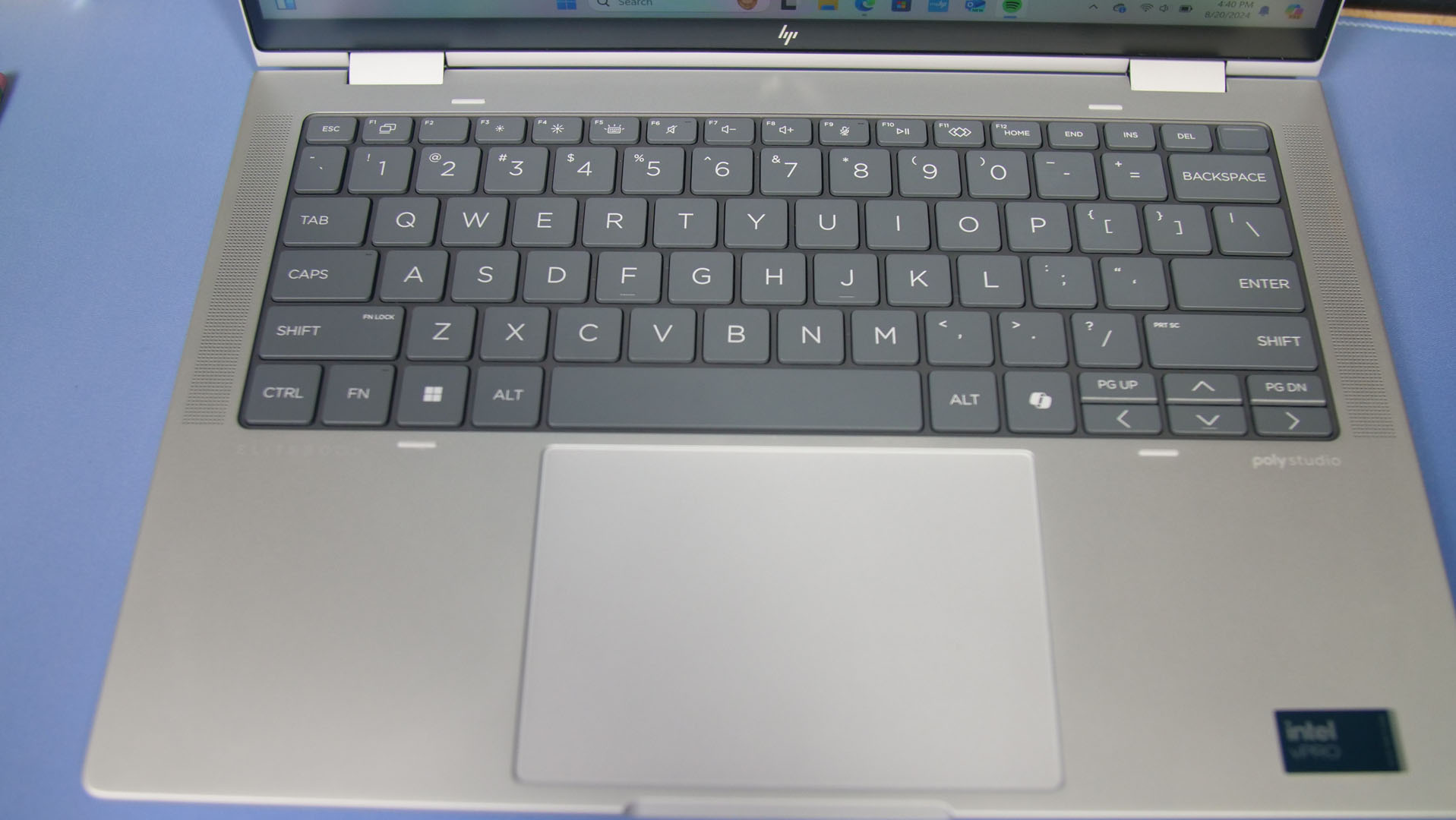 I really enjoyed typing on the Elite x360’s full-size, island-style keyboard. The keycaps are large with nice spacing. The keys are springy, and my fingers never bottomed out while typing the review. When I took the MonkeyType typing test, I easily hit my usual 70 words per minute with a 98% accuracy rate. If you’re prone to spilling drinks on your laptop, you’ll be happy to know that the keyboard is spill-proof and fairly easy to clean.
