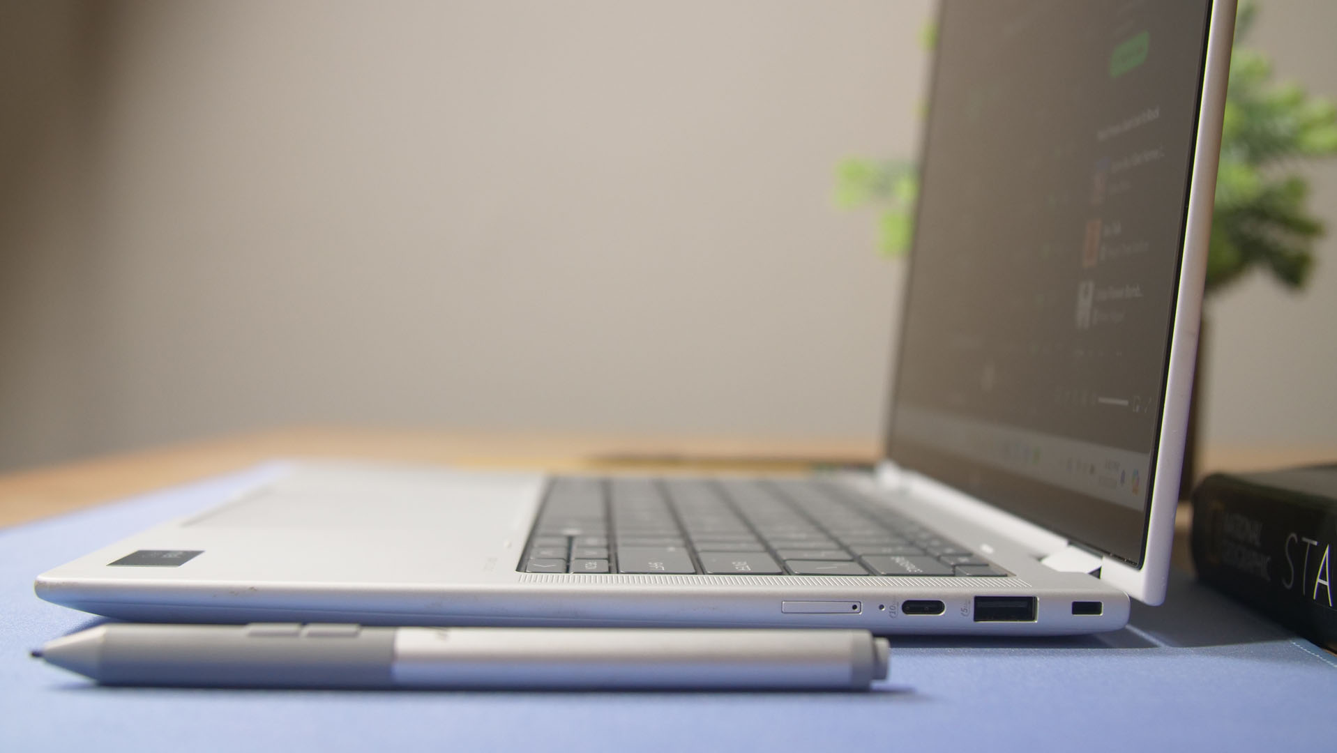 Despite the Elite x360’s slim figure, HP didn’t skimp on the ports and slots. They’re even more important in business laptops, as most people will have a bunch of peripherals they’ll want to connect. For the Elite x360, you get a USB-A port, a USB-C port, two Thunderbolt 4 ports, an HDMI 2.1 port, a nano-SIM slot, and a security lock slot.