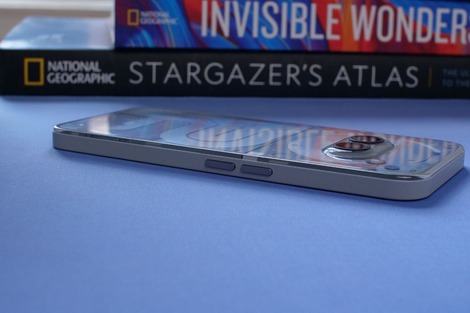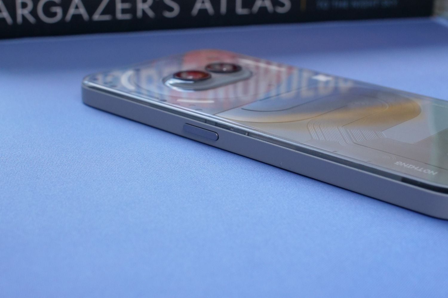 Just like I was happy about Motorola playing around with bright, funky colors on the Moto Razr+, I’m glad Nothing took a different approach with its flagship phone, too. What I like most about the design and overall build of the (2A) Plus is that it doesn’t look like a $400 phone. It features a robust body and excellent build quality, and you can’t tell what it’s worth just by looking at it. The controls–a power button on the right and a pair of volume buttons on the left feel nice and clicky, too.
