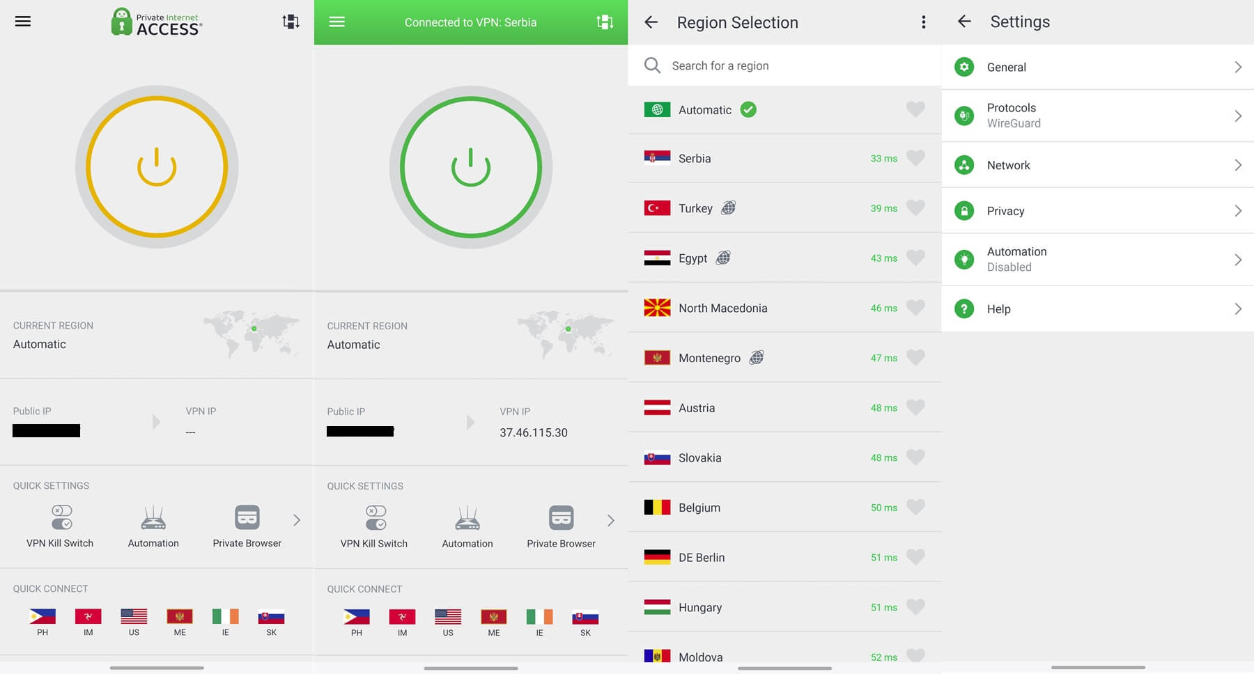 Automation is more of a convenience, rather than a security feature like others. We love it because simplifies the use of a VPN. You can use it to make Private Internet Access automatically connect or disconnect from a server on specific networks.