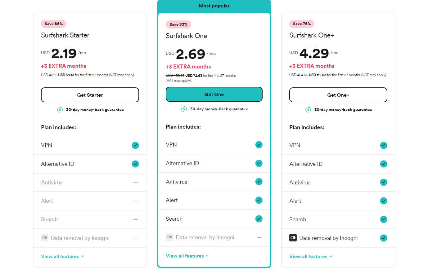 At the time of doing this review, Surfshark offers a staggering Starter deal at just under $2.2 a month with 3 EXTRA months. The Surfshark One is the best value in our book, as it offers advanced features that we’ll discuss later in the test.